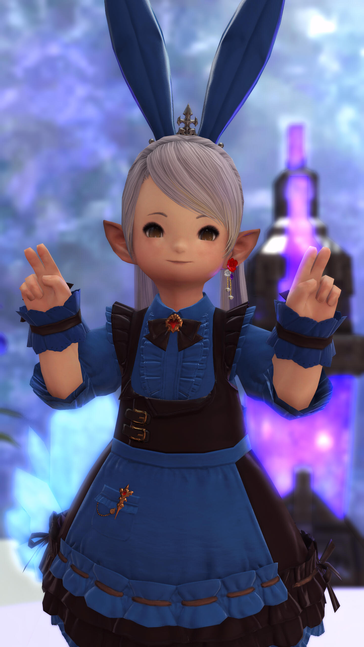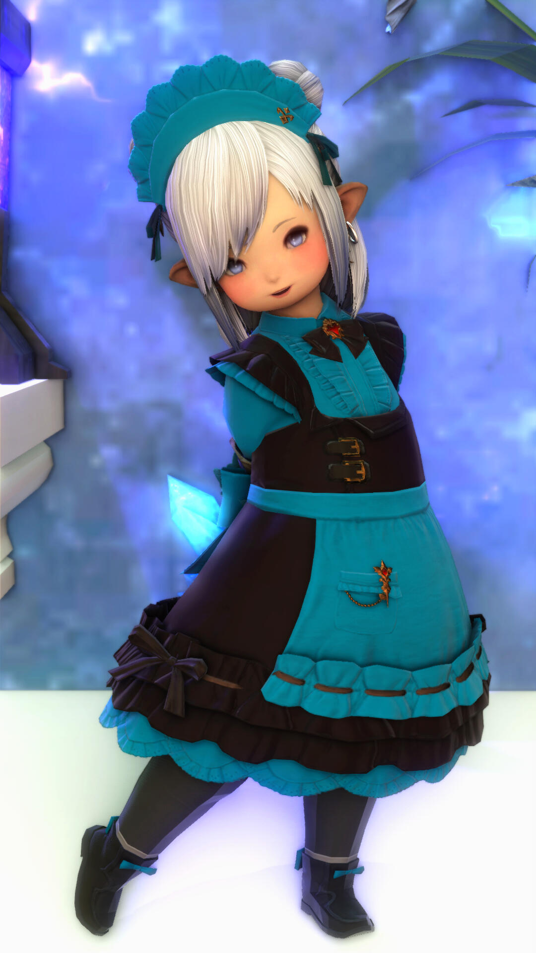 "Rising from the abyss—’tis I, Elurinne Fenia! But you can just call me Elu~ I came to the surface to bring smiles and leave my Masters moonstruck ⭐ I can’t wait to serve my lovely Masters!"
