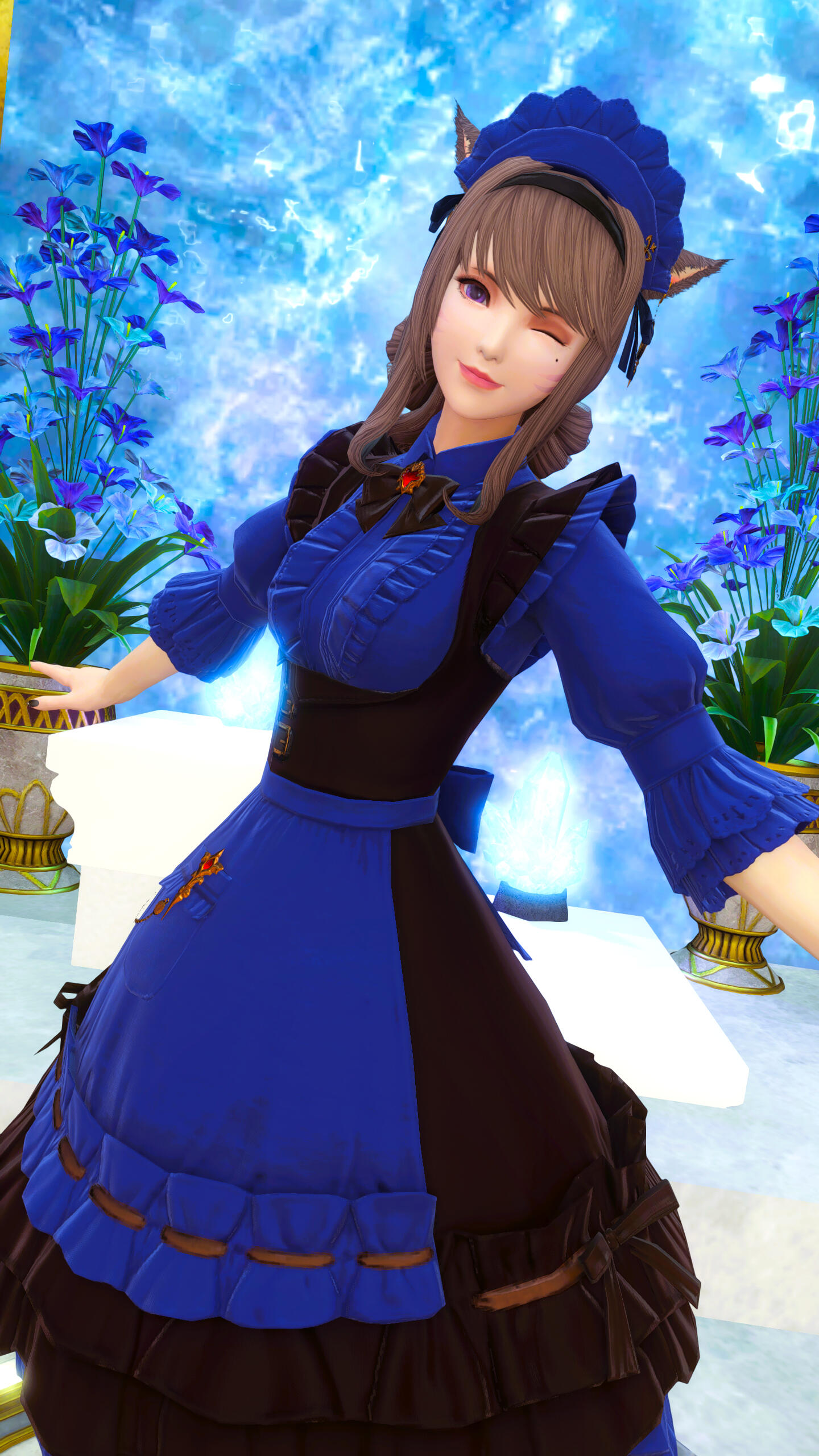 I am Lorien Aelios, your cheerful topaz maid ✧ — sparkling just for you~ I love teasing Master (just a little~), chasing carbuncle, and most importantly… eating Dango" 🍡